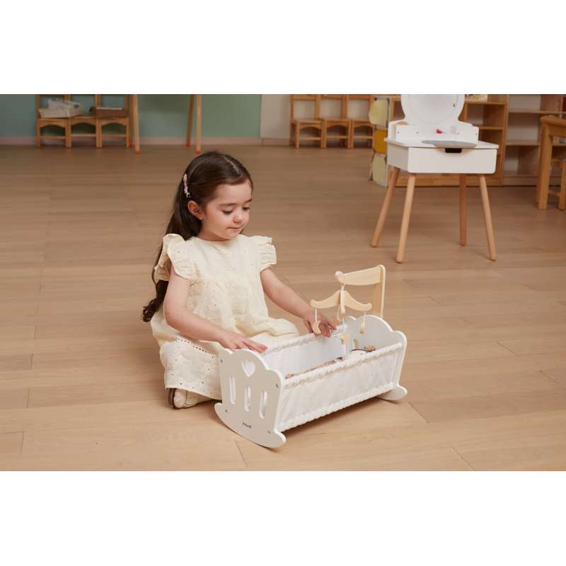 Den stabile konstruktion og de gennemførte detaljer gør sengen både holdbar og dekorativ. En oplagt gaveidé til det barn, der elsker at tage sig kærligt af sine dukker.
