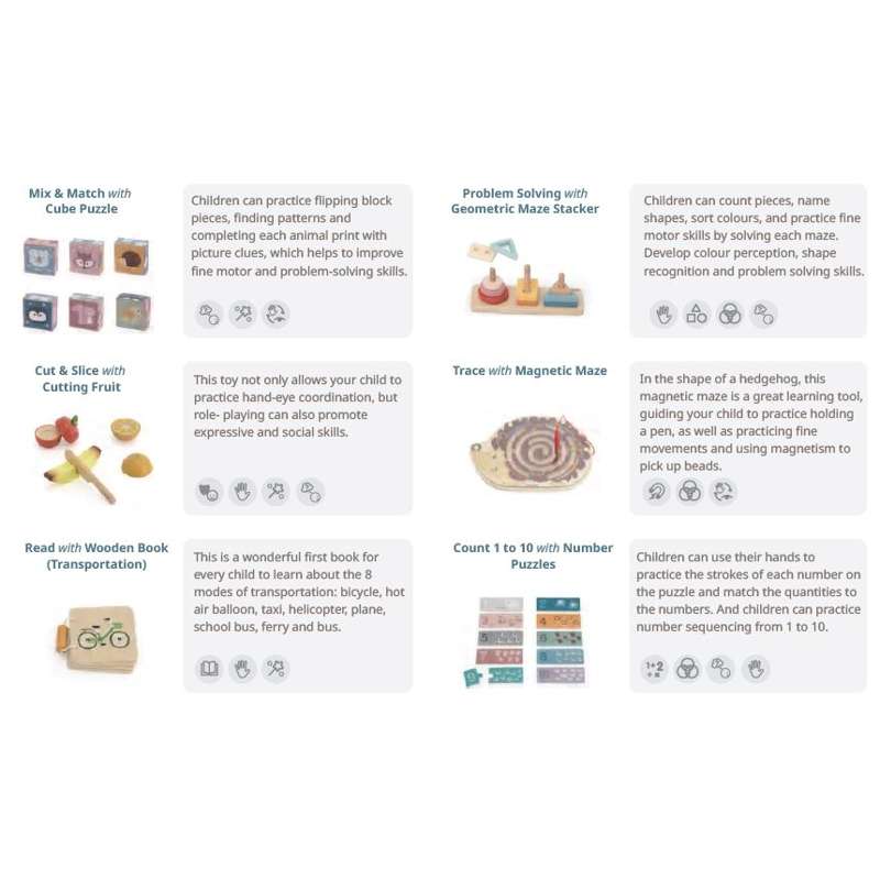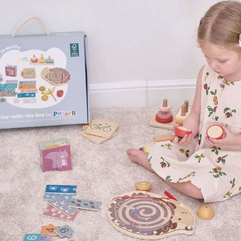 Grow-with-Me-bokse støtter børns læring under vigtige udviklingstrin med legeartikler, der er tilpasset deres alder. De sparer også forældre tid og energi ved at udvælge alderssvarende, sikre og lærerige legetøj fra markedet.