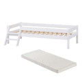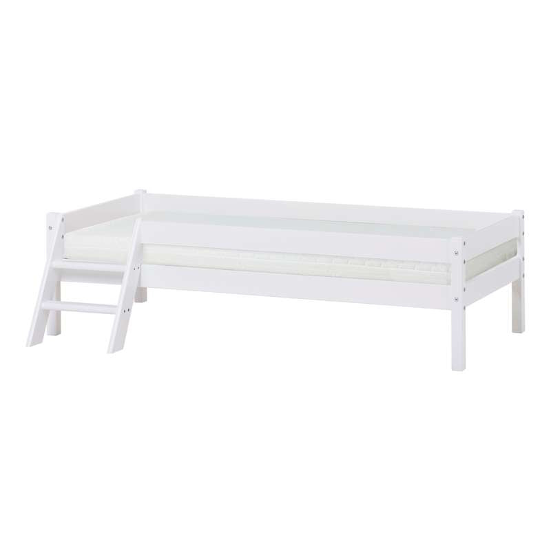 Juniorseng i størrelse 70x160 cm er den perfekte overgang fra babyseng til juniorseng, fordi der stadig er rigeligt med plads til at vokse, uden at sengen føles stor og utryg. Sengehesten er en ekstra beskyttelse til barnet og kan sammen med den lille trappe placeres i begge sider så den passer til dit barns behov.