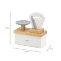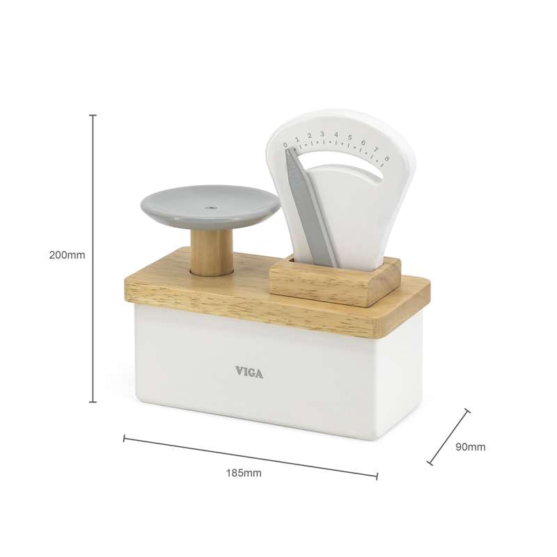 Denne fine vægt i træ tilfører et realistisk element til enhver leg med butik eller køkken. Når barnet placerer varer på vægtskålen, bevæger pilen sig – præcis som på en rigtig vægt – hvilket gør legen endnu mere autentisk og spændende.