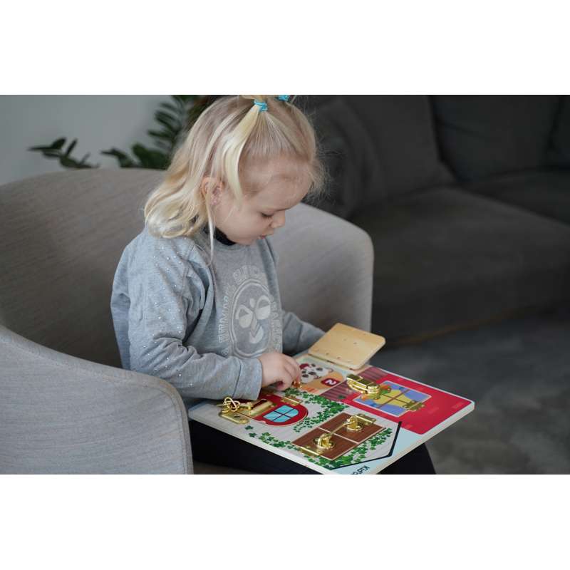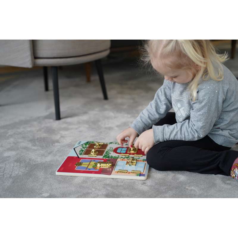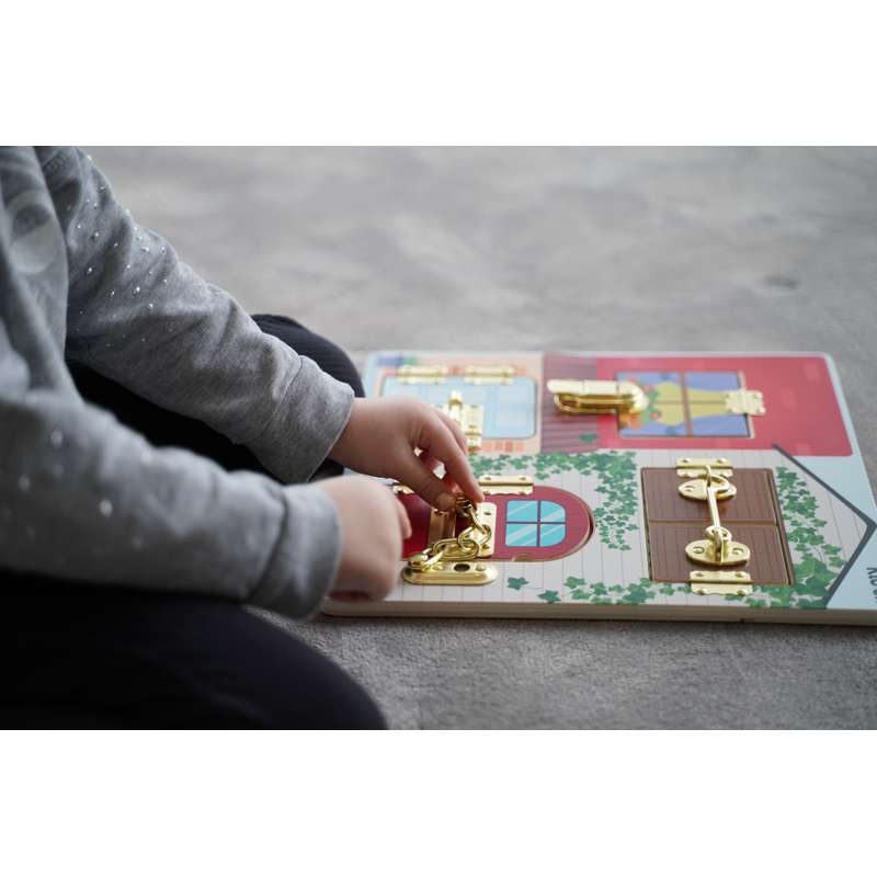 Med låsebrættet kan baby lære at åbne og lukke de 4 låse.