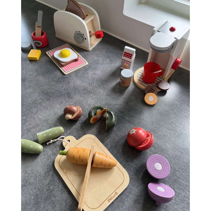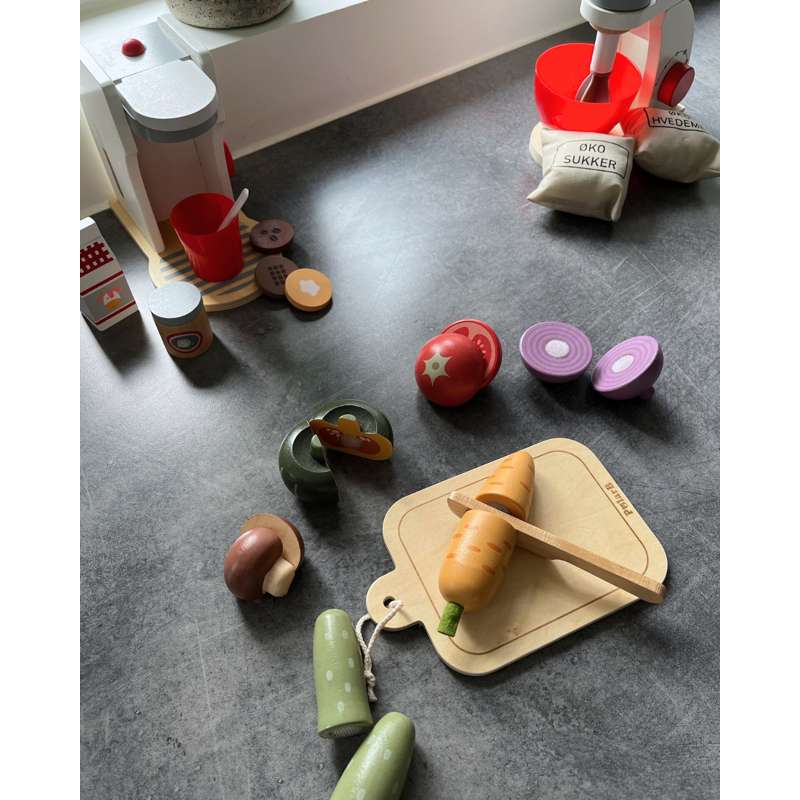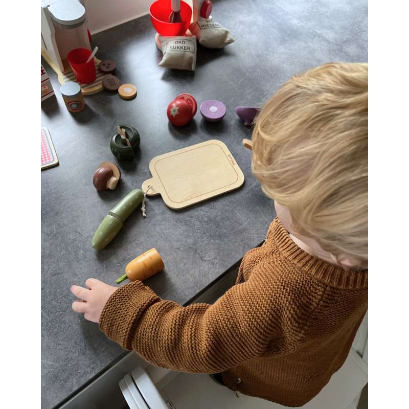 - Medfølger skærebræt og kniv – dette grøntsagsskæresæt giver dit barn timevis af tidløs leg.