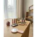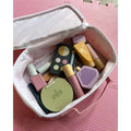 - Indeholder en kam, en øjenskyggepalette, en øjenskyggebørste, en brynblyant, en creme, en pudder med spejl, 2 læbestifter, 2 neglelakker, en parfume og en opbevaringsæske.