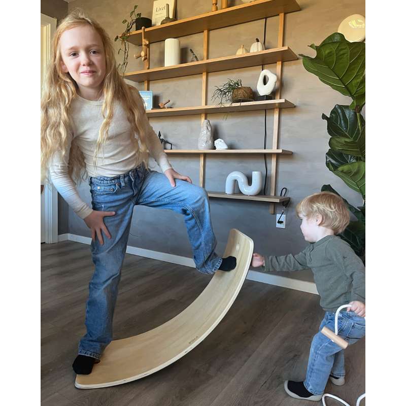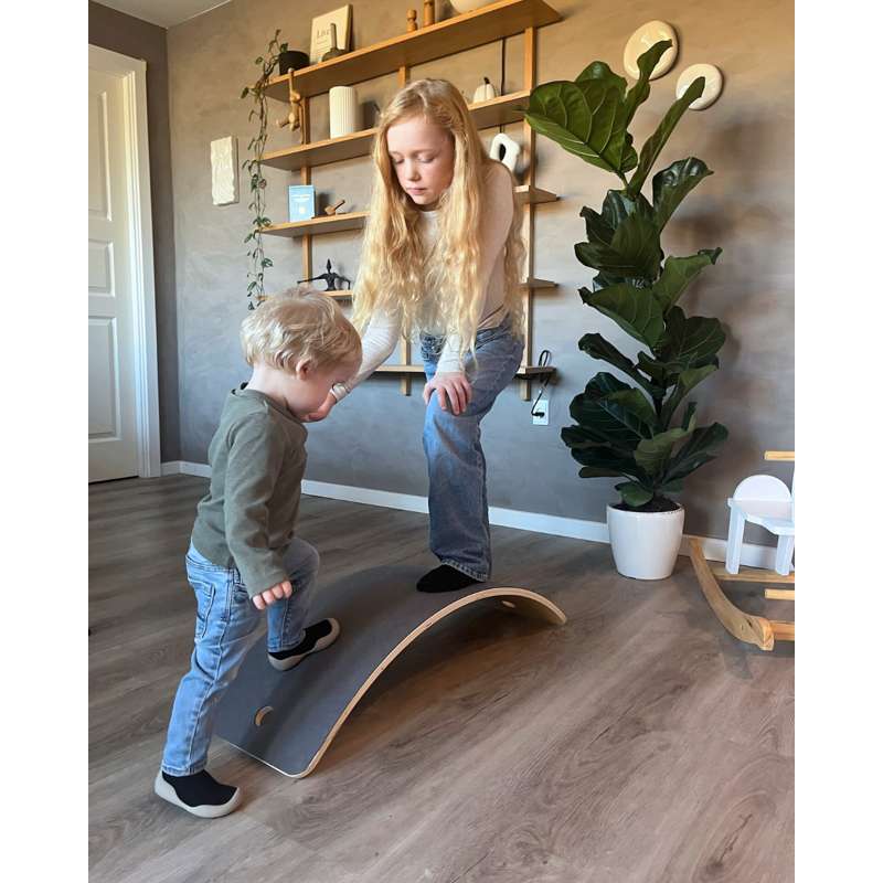 Dette alsidige balancebræt hjælper med at udvikle balance, styrke kropsbevidsthed og stimulere det vestibulære system – alt imens barnet leger og bevæger sig naturligt. Perfekt til både leg, træning og sansestimulering i børnehøjde.