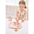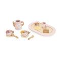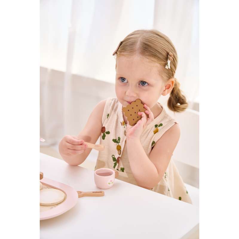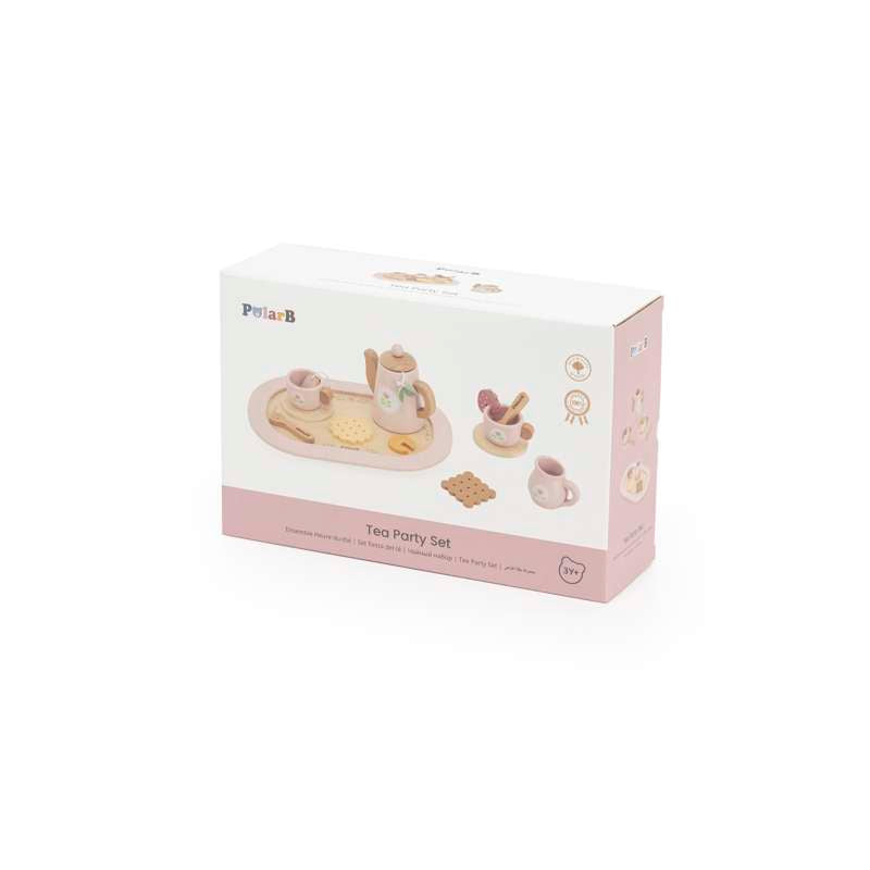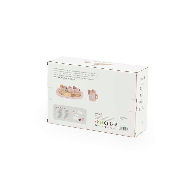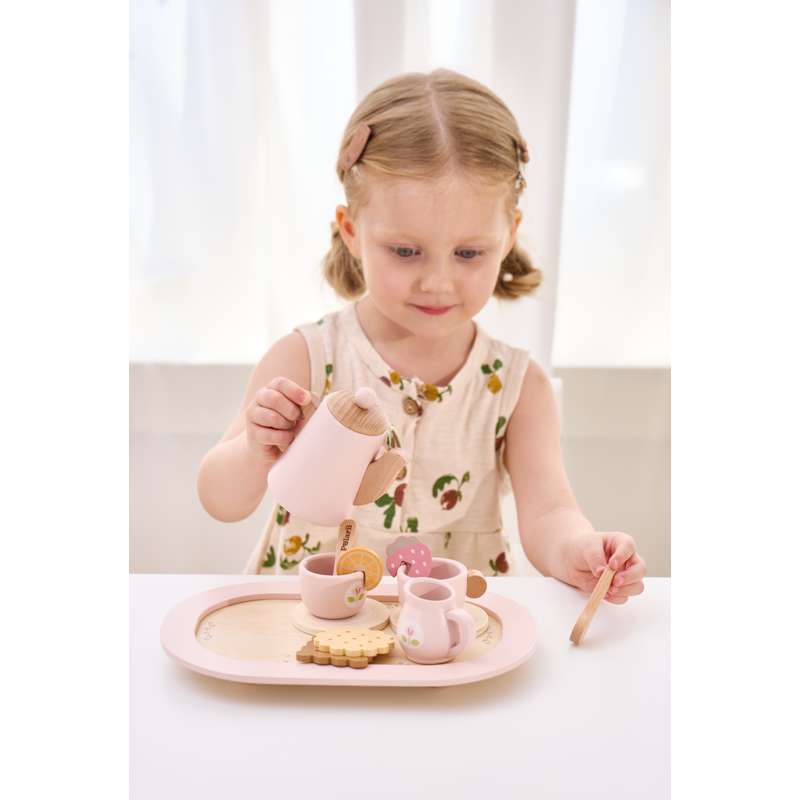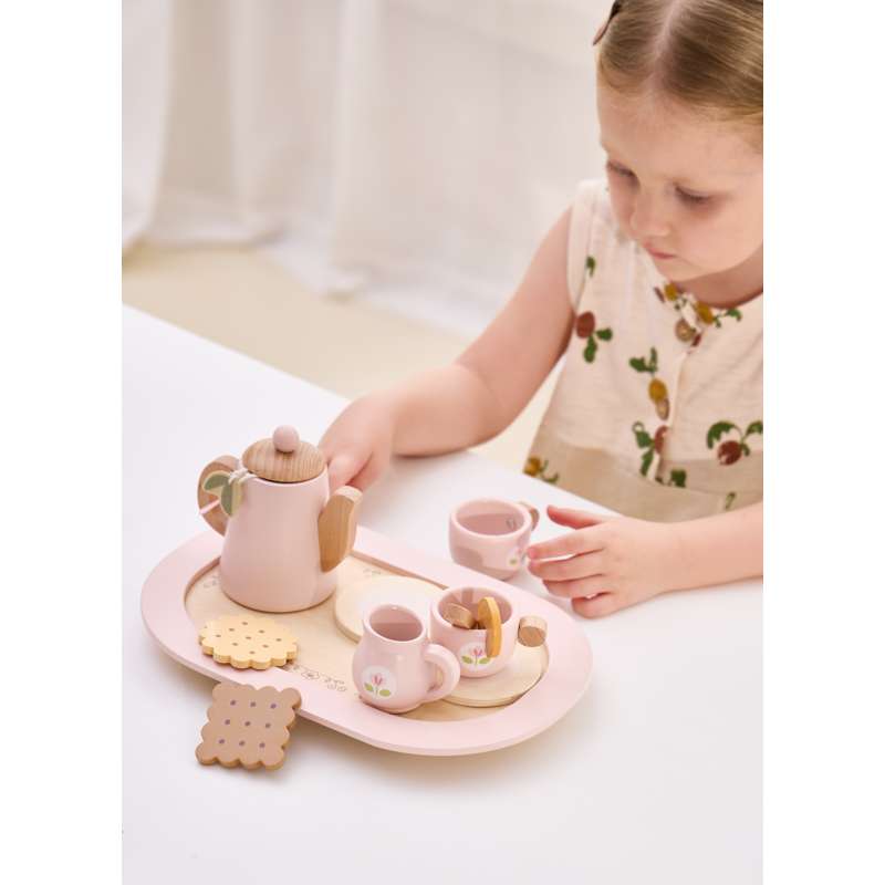 Med dette charmerende tesæt er børnene klar til at invitere til deres egen hyggelige tefest! Sættet indeholder tekande, kopper og coasters, mælkekande, tebreve, skeer, citron- og jordbærskiver, småkager og serveringsbakke – alt, hvad der skal til for en fantasifuld legestund. Perfekt til rolleleg og til at styrke barnets sociale færdigheder gennem leg.