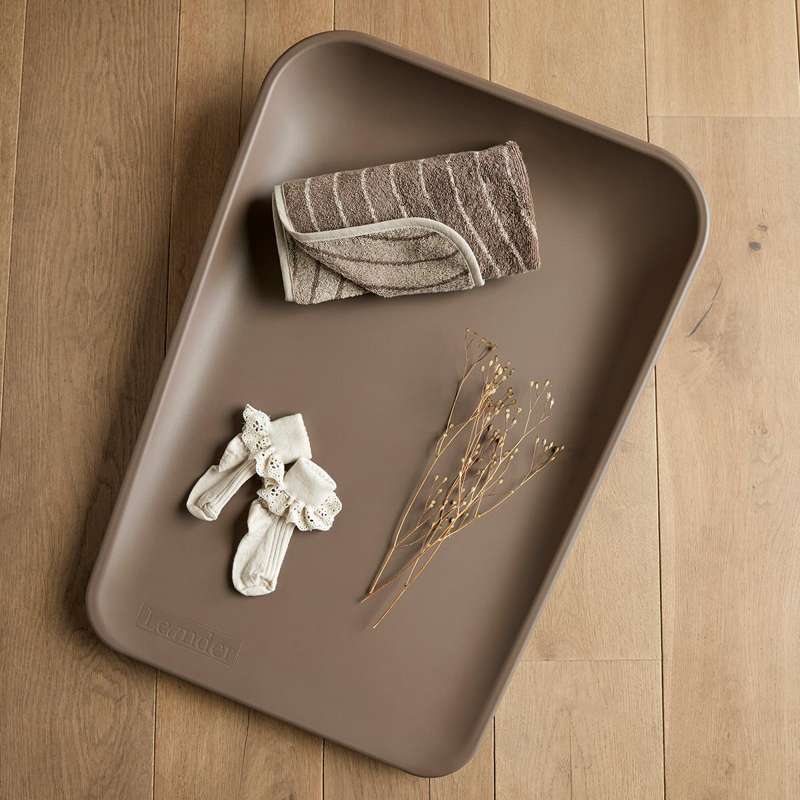 Den bløde Leander topper er lavet af økologisk bomuldsfrotté og passer perfekt til formen på Leander Matty™ puslepuden og Leander Wally™ væghængt puslebord. Brug den som et lille håndklæde, eller læg den under din baby, når du skifter ble. Det vil skåne din puslepude og hjælpe dig, hvis der skulle ske uheld. Topperen er vendbar. Det giver dig to forskellige sider og farver og dermed flere muligheder for styling. Topperens farver matcher farverne på Leander Matty™ puslepuden.