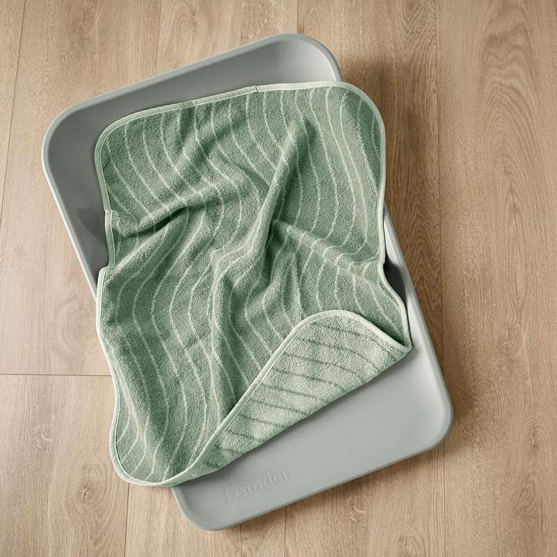 Den bløde Leander topper er lavet af økologisk bomuldsfrotté og passer perfekt til formen på Leander Matty™ puslepuden og Leander Wally™ væghængt puslebord. Brug den som et lille håndklæde, eller læg den under din baby, når du skifter ble. Det vil skåne din puslepude og hjælpe dig, hvis der skulle ske uheld. Topperen er vendbar. Det giver dig to forskellige sider og farver og dermed flere muligheder for styling. Topperens farver matcher farverne på Leander Matty™ puslepuden.