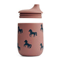 Liewood Ellis Drikkekop m. Låg og Sugerør - Silikone - Horses/Dark Rosetta