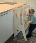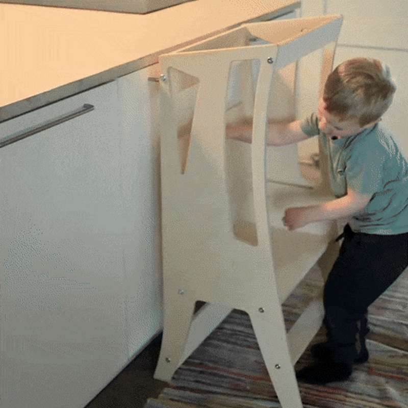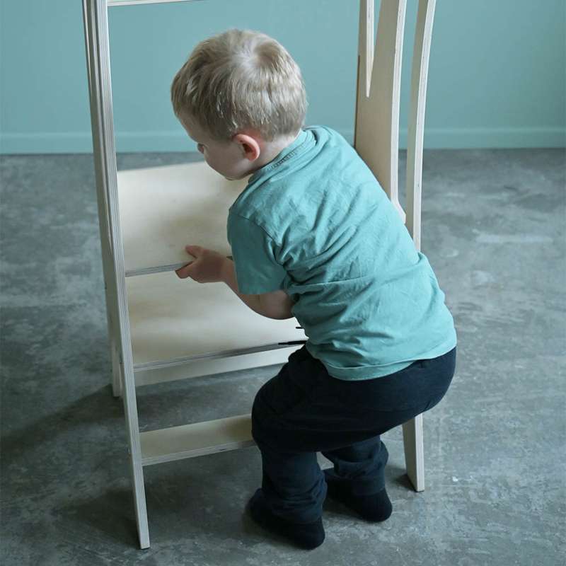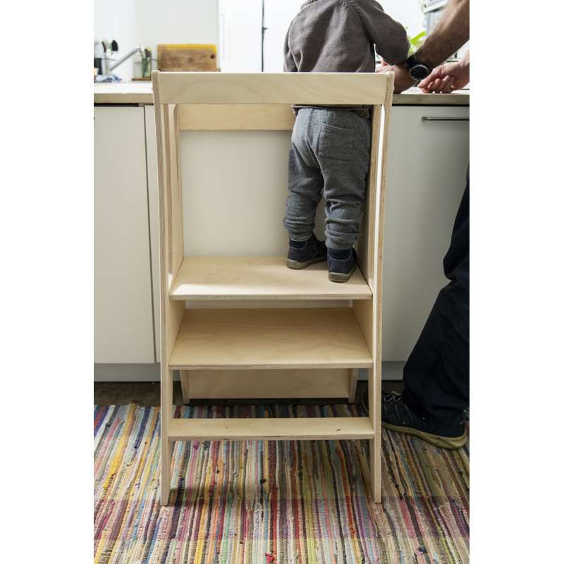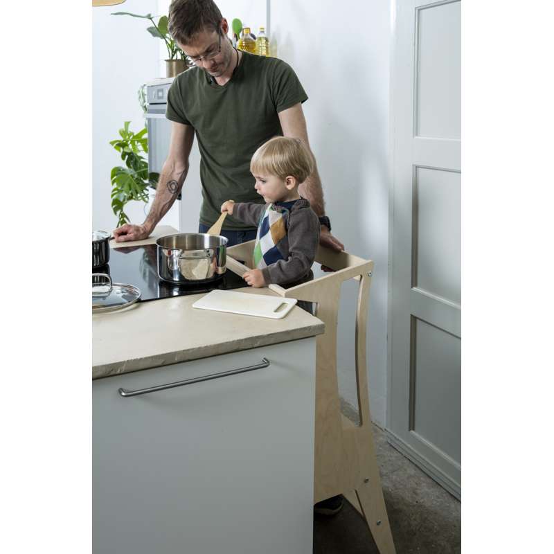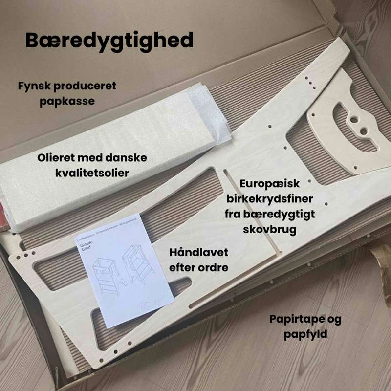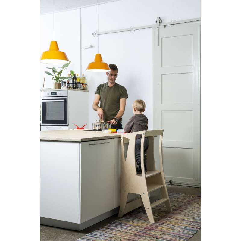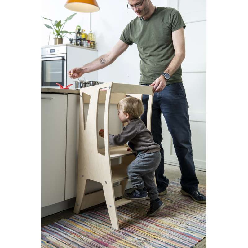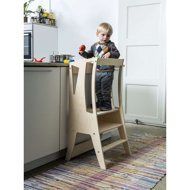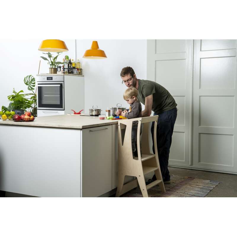 Med Giraffen Læringstårn får du et sikkert, holdbart og danskproduceret møbel, der inviterer barnet til at være en aktiv del af hverdagens oplevelser i køkkenet – på en tryg, ergonomisk og legende måde. OG du støtter lokalproduceret dansk håndværk og design.