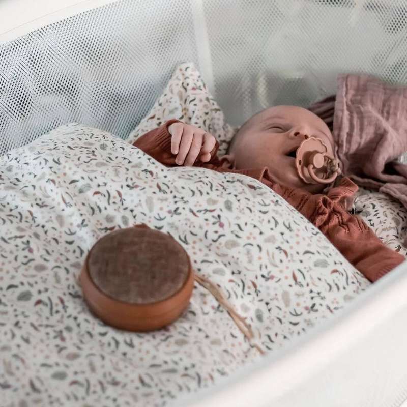 Kompakt og vandafvisende design: Brug den både hjemme eller på farten, f.eks. for at skabe tryghed i barnevognen eller på ferien.