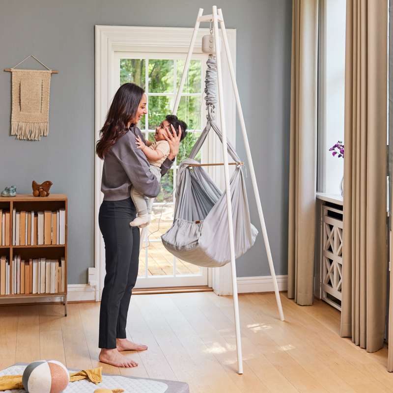 Varenummer: WIT-25040074Slyngevuggen efterligner forældrenes trygge favn og bløde bevægelser og former sig om barnets krop. Slyngevuggen, der også kaldes hængevugge eller fjedervugge, giver din baby en tryg og behagelig følelse. Den er perfekt til urolige babyer eller babyer, der sover relativt korte lure. Du kan placere den stort set, hvor du ønsker det, og du kan endda tage den med til bedsteforældre, venner eller i mødregruppen – blot du har det rette tilbehør. Kombinerer du vuggen med vores vuggemotor, kan du samtidig få frie hænder, mens din baby får en god lur.
