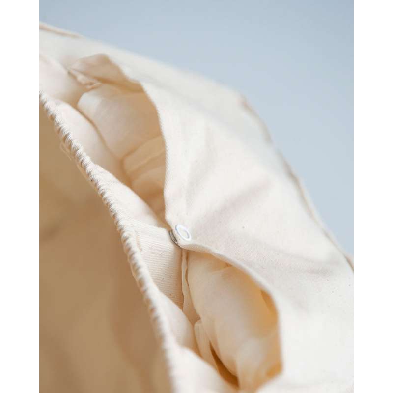 Premium tvillingeslyngevuggen er lavet af super blød og slidstæk økologisk bomuld og kommer med en madras med fyld af 100% ren uld med 100% økologisk bomuldsbetræk, et lagen i blødt økologisk bomuld og med et fint broderi af lukkede øjne, to baldakiner/myggenet og fjeder. Slyngevuggen kommer med en karabinhage skruelås, så du kan montere slyngevuggen direkte i den medfølgende fjeder. Karabinhagen er isoleret med gummi, for at sikre mod eventuelle metalsplinter.
