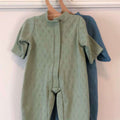 Romperen er en del af miks og match kollektionen fra Memories by Así, hvor barnet eller gavegiveren selv vælger dukkens tøj og således sammensætter en unik garderobe til den. Her ses romperen i mint.