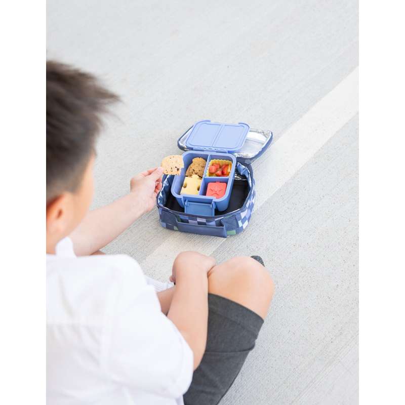 Madkassen rummer 500 ml. og er inddelt i to rum og lukkes med en klap, der er nem at betjene, selv for små fingre. Den er perfekt til den lille sult, enten på farten, eller som madkassen til formiddags- eller eftermiddagsmad i skole, børnehave eller vuggestue.