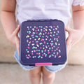 I låget på madkassen sidder en silikoneforsegling, der lukkes ned over skillevæggene i madkassen. Dette gør at alle rum, der er forseglet slutter tæt, og dermed kan du fint servere tyktflydende dressing, ketchup, hummus, pesto mv. i din Little Lunch Box. Læg dog ikke væskende/vandige madvarer i rummene.
