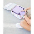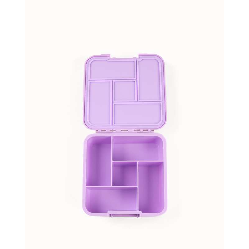 I låget på madkassen sidder en silikoneforsegling, der lukkes ned over skillevæggene i madkassen. Dette gør at alle rum, der er forseglet slutter tæt, og dermed kan du fint servere tyktflydende dressing, ketchup, hummus, pesto mv. i din Little Lunch Box. Læg dog ikke væskende/vandige madvarer i rummene.