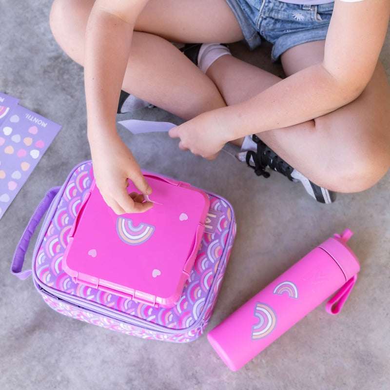 MontiiCo Vandfaste Stickers til Madkasser og Drikkedunke - Rainbow Roller