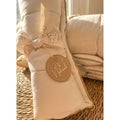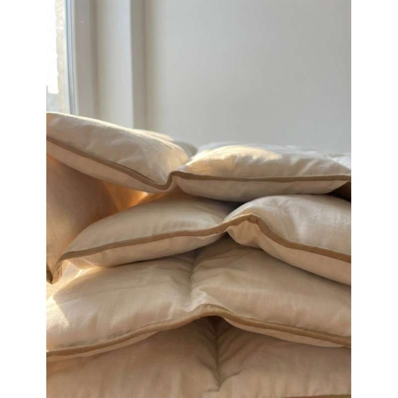 Den elegante pipingkant giver et rent, tidløst udtryk og forstærker sømmen langs kanten, så dynen holder formen flot – også efter gentagen brug. Med det klassiske juniormål på 100×140 cm passer dynen perfekt i standard juniordynebetræk.