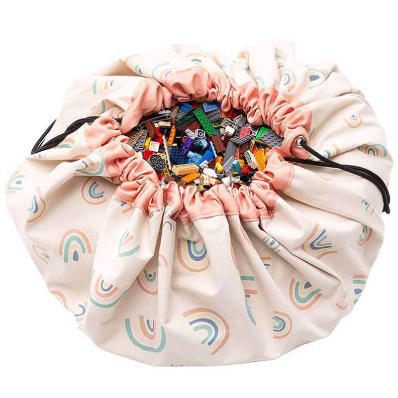 Men slut med det! For med de super smarte Play & Go bæretasker, så har du et legetæppe og legetøjsopbevaring i ét. Lad mini lege på opbevaringstæppet og når dagen er omme, så strammer du blot snøren i tæppet og straks er der smuk samling på alle småtterierne.