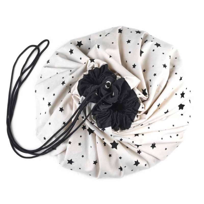 Men slut med det! For med de super smarte Play & Go bæretasker, så har du et legetæppe og legetøjsopbevaring i ét. Lad mini lege på opbevaringstæppet og når dagen er omme, så strammer du blot snøren i tæppet og straks er der smuk samling på alle småtterierne.