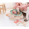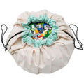 Men slut med det! For med de super smarte Play & Go bæretasker, så har du et legetæppe og legetøjsopbevaring i ét. Lad mini lege på opbevaringstæppet og når dagen er omme, så strammer du blot snøren i tæppet og straks er der smuk samling på alle småtterierne.