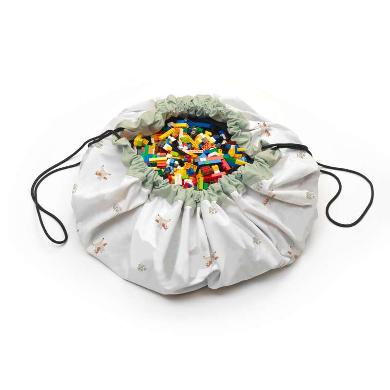 Men slut med det! For med de super smarte Play & Go bæretasker, så har du et legetæppe og legetøjsopbevaring i ét. Lad mini lege på opbevaringstæppet og når dagen er omme, så strammer du blot snøren i tæppet og straks er der smuk samling på alle småtterierne.