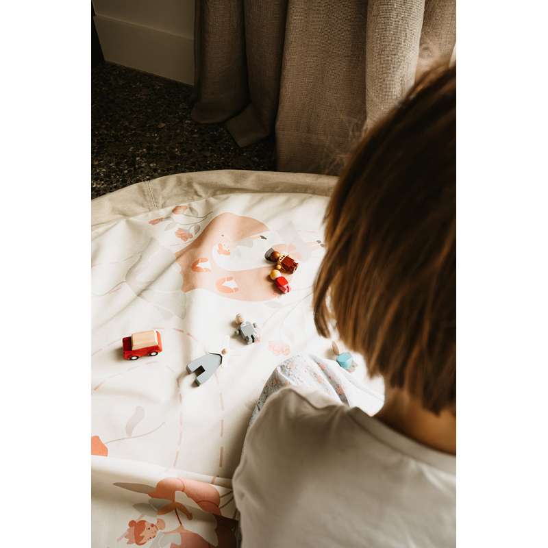Legetøjstæppet er også perfekt til en udflugt på stranden, i parken, til bedsteforældrene, ud i haven - eller til vasketøj!