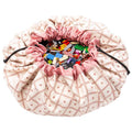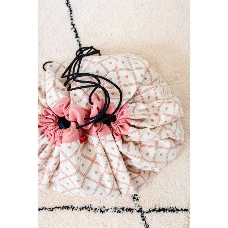 Men slut med det! For med de super smarte Play & Go bæretasker, så har du et legetæppe og legetøjsopbevaring i ét. Lad mini lege på opbevaringstæppet og når dagen er omme, så strammer du blot snøren i tæppet og straks er der smuk samling på alle småtterierne.