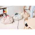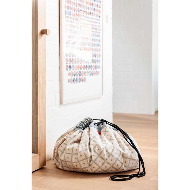 Men slut med det! For med de super smarte Play & Go bæretasker, så har du et legetæppe og legetøjsopbevaring i ét. Lad mini lege på opbevaringstæppet og når dagen er omme, så strammer du blot snøren i tæppet og straks er der smuk samling på alle småtterierne.