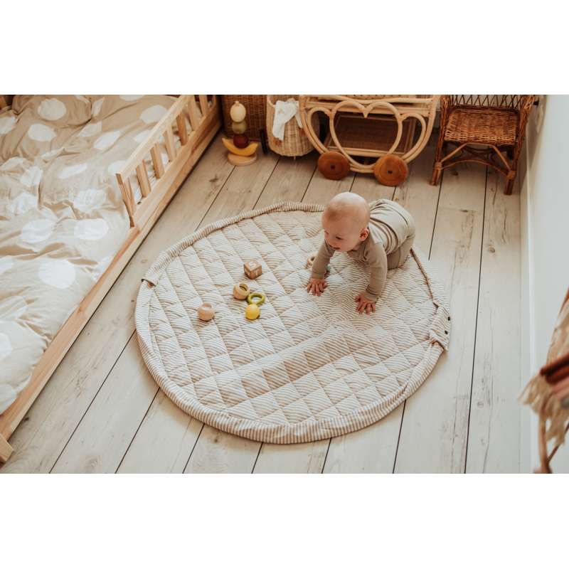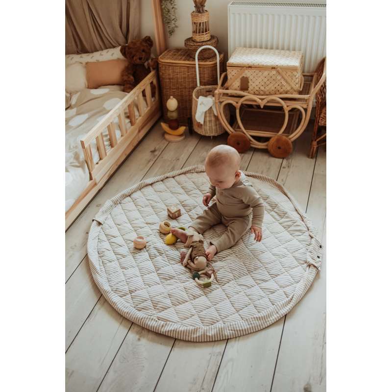 Tæppet kan fyldes med legetøj og bøger, så det også er ideelt til ture i parken eller på besøg hos venner. Et funktionelt og charmerende valg til aktive familier.
