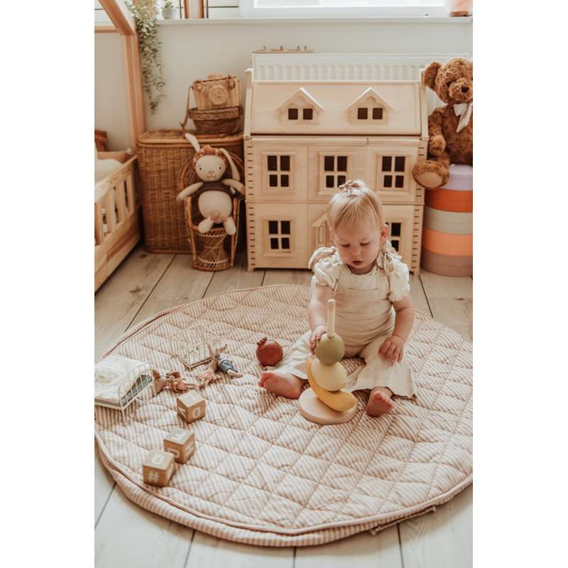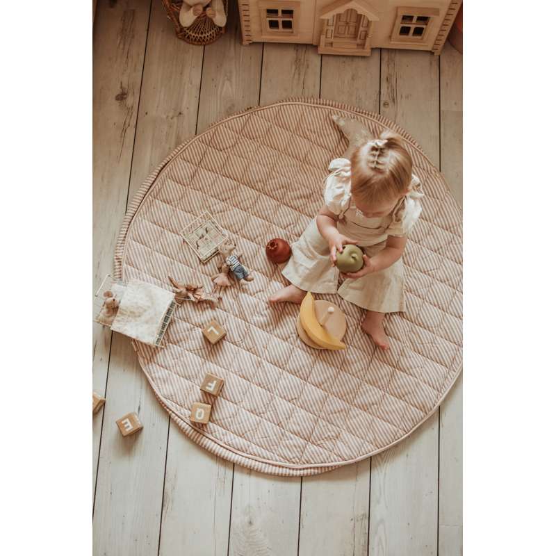 Tæppet kan fyldes med legetøj og bøger, så det også er ideelt til ture i parken eller på besøg hos venner. Et funktionelt og charmerende valg til aktive familier.