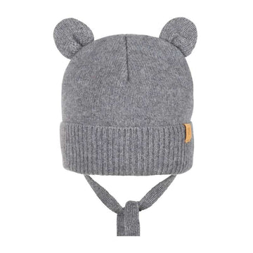 Babyhue i sødt bjørnedesign lavet af fin og blød strik i 90% merinould og 10% kashmir. Designet af den søde hue sikrer en optimal pasform, og materialet beskytter barnets sarte hovedbund pålideligt mod kulde.