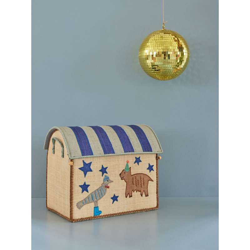 RICE Raffia Opbevaringshus - Party Animal - Blå - Mellem