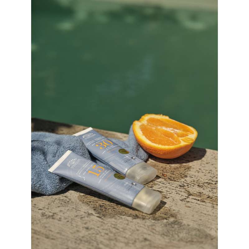 Sun Body Lotion SPF 15 er en beskyttende, beroligende og vandafvisende lotion, der beskytter dig effektivt mod solens skadelige UVA- og UVB-stråler. Sun Body Lotion er nem at fordele og hverken klistrer, fedter eller hvidter. En lotion, der er rig på naturlige, økologiske ingredienser, som nærer, fugter og plejer din hud i solen.