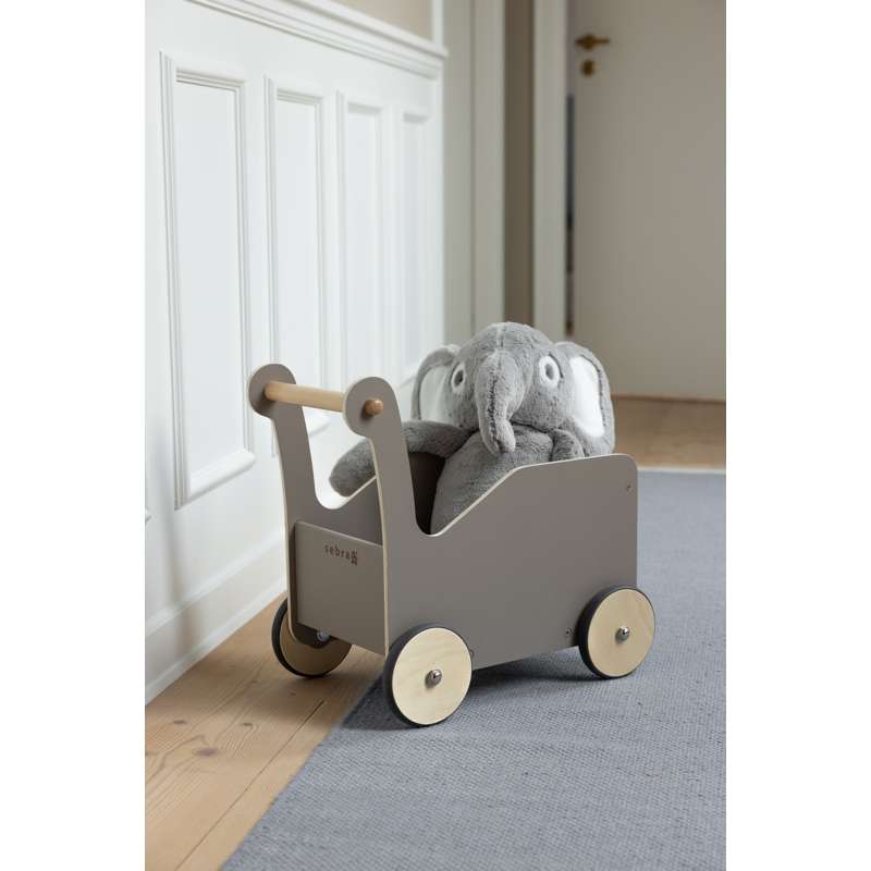 Gåvognen er udstyret med gummihjul, der gør, at den kører let og støjsvagt hen over gulvene. De to fronthjul fungerer som støddæmpere, hvis den lille støder ind i noget på sin vej.