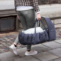 Kalechen placeres nemt i den ene ende af babynesten og fastgøres sikkert omkring hankene med en tryklås, så den altid sidder stabilt.