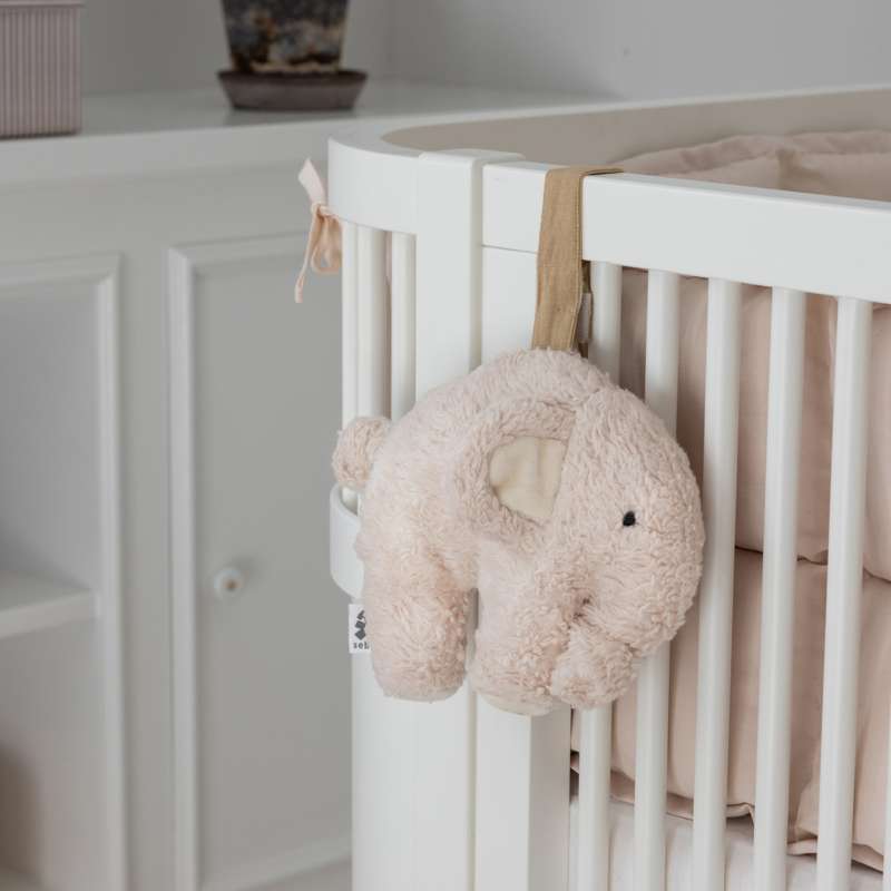Fanto er 15 cm høj og udstyret med en praktisk velcrostrop, der gør den let at fastgøre til sengen, aktivitetsstativet, autostolen eller andre steder, hvor den kan skabe værdi. Elefanten har bløde ører og en knude på halen, som små fingre kan nulre og finde tryghed i.