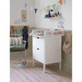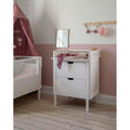 Sebra Sengen – sengen, der vokser med barnet sammen med det populære Sebra puslebord m. Skuffer og en matchende uroholder - alt i farven Classic White.