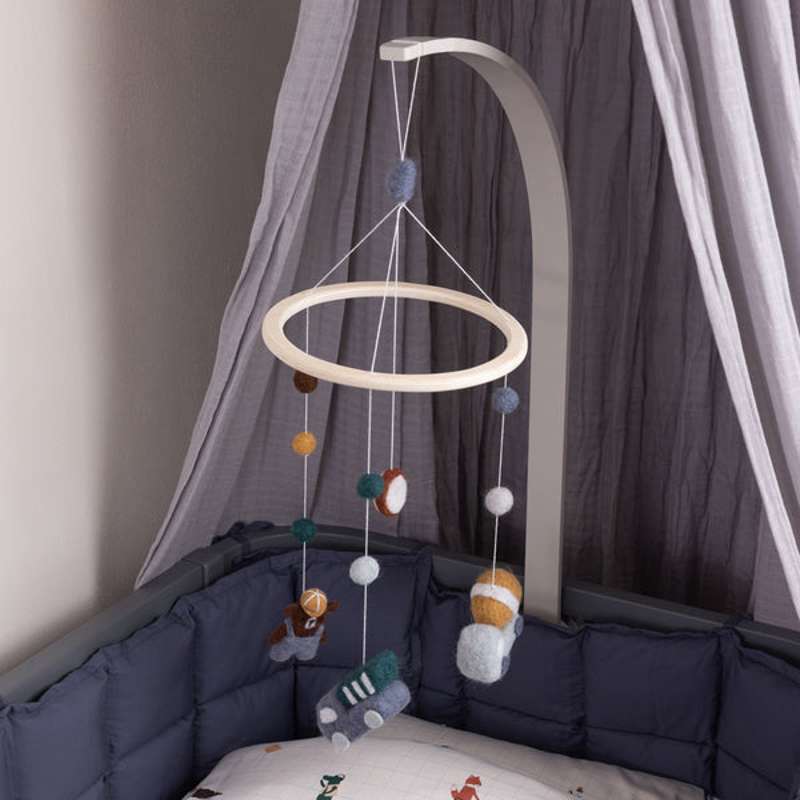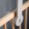 Sebra Sengen – sengen, der vokser med barnet sammen med det populære Sebra puslebord m. Skuffer - begge i farven Stone Grey. Samt en nuance-matchende uroholder i farven Elephant Grey.