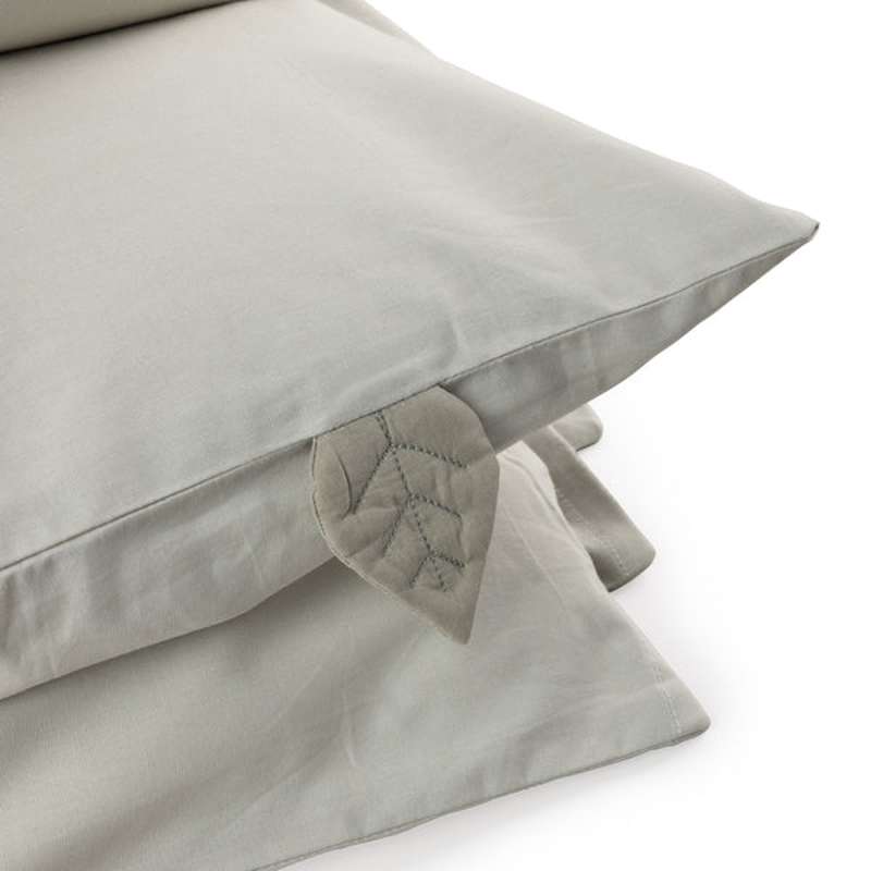 Sengetøjet indeholder dynebetræk og hovedpudebetræk i babystørrelse. Begge dele har en god YKK-lynlås, der er skjult, så den ikke generer søvnen. Som en ekstra detalje har dynebetrækket et lille blad påsyet, der fungerer som nulreflap til små søvnige fingre.