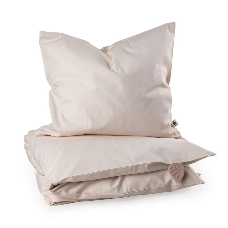 Sengetøjet indeholder dynebetræk og hovedpudebetræk i babystørrelse. Begge dele har en god YKK-lynlås, der er skjult, så den ikke generer søvnen. Som en ekstra detalje har dynebetrækket et lille blad påsyet, der fungerer som nulreflap til små søvnige fingre.