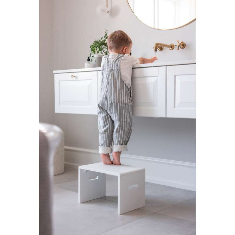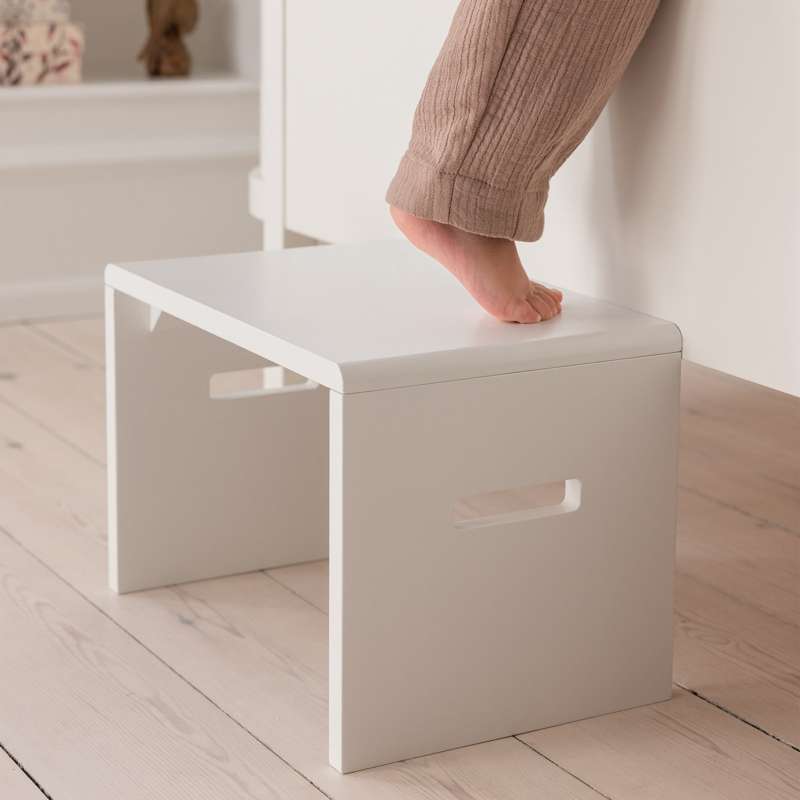 Den praktiske skammel kan også bruges som en ekstra hånd i køkkenet, når der mangler nogle centimeter for at kunne nå køkkenbordet, eller som et lille bakkebord til at serverer snacks på.