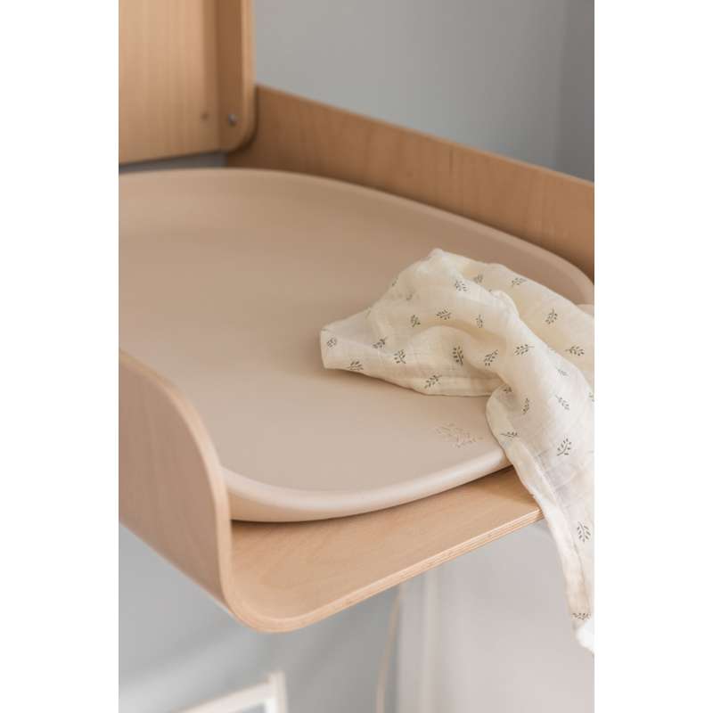 Når du har din baby på armen og hurtigt skal skifte en ble, sikrer puslebordets låsemekanisme, at du nemt kan folde bordet ned med én hånd. Låsemekanismen er fremstillet af formbøjet træ, som du kender det fra Sebra Sengen, og holder bordet spændt fast, når du folder det op.