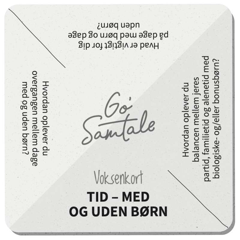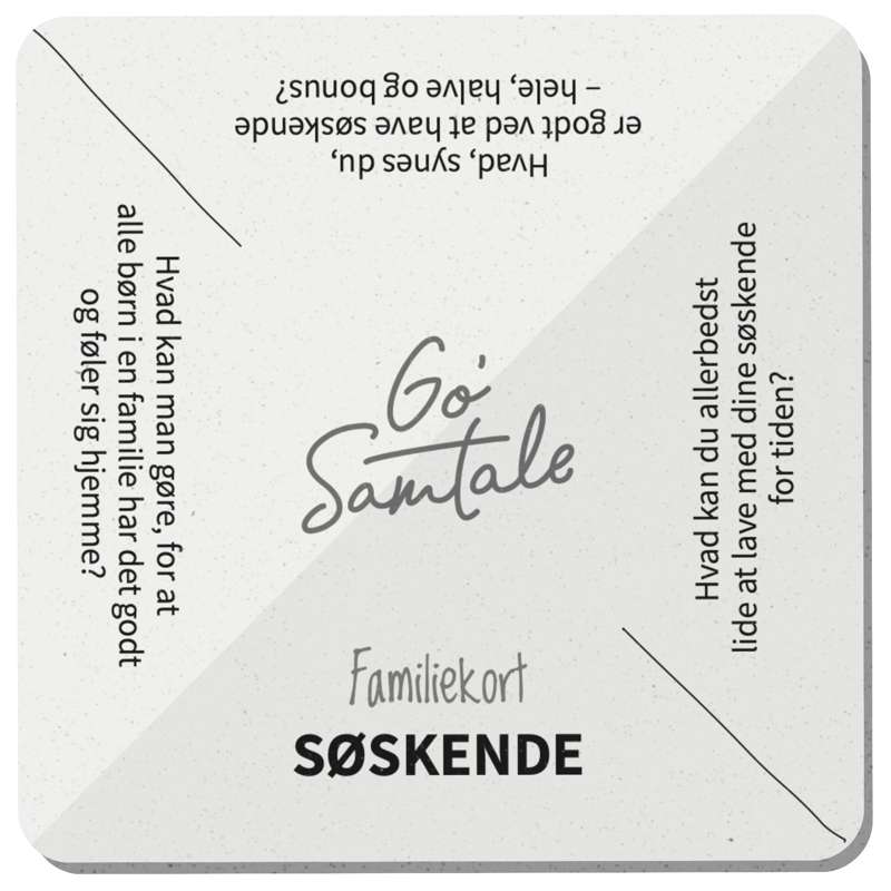 Go’ Samtale for sammenbragte familier er 60 samtalekort om hverdagen og livet som sammenbragt familie.