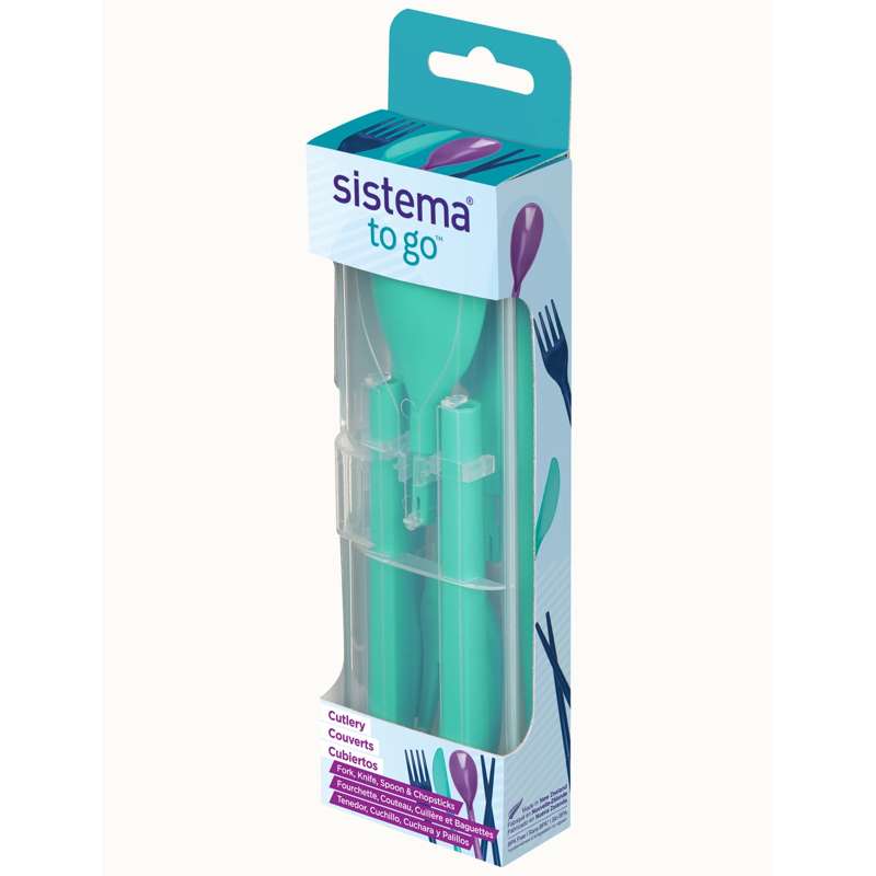 Sistema Madpakketilbehør - To Go Bestiksæt m. Beholder - Minty Teal