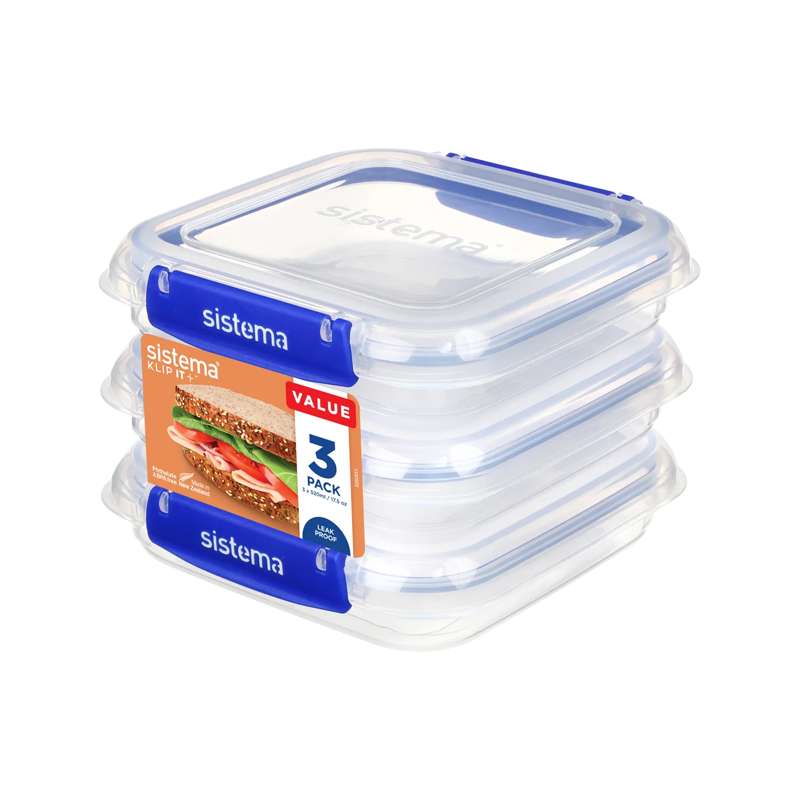 Sistema Madopbevaring - Klip It Plus - Square - 3-Pak - 520ml - Blå