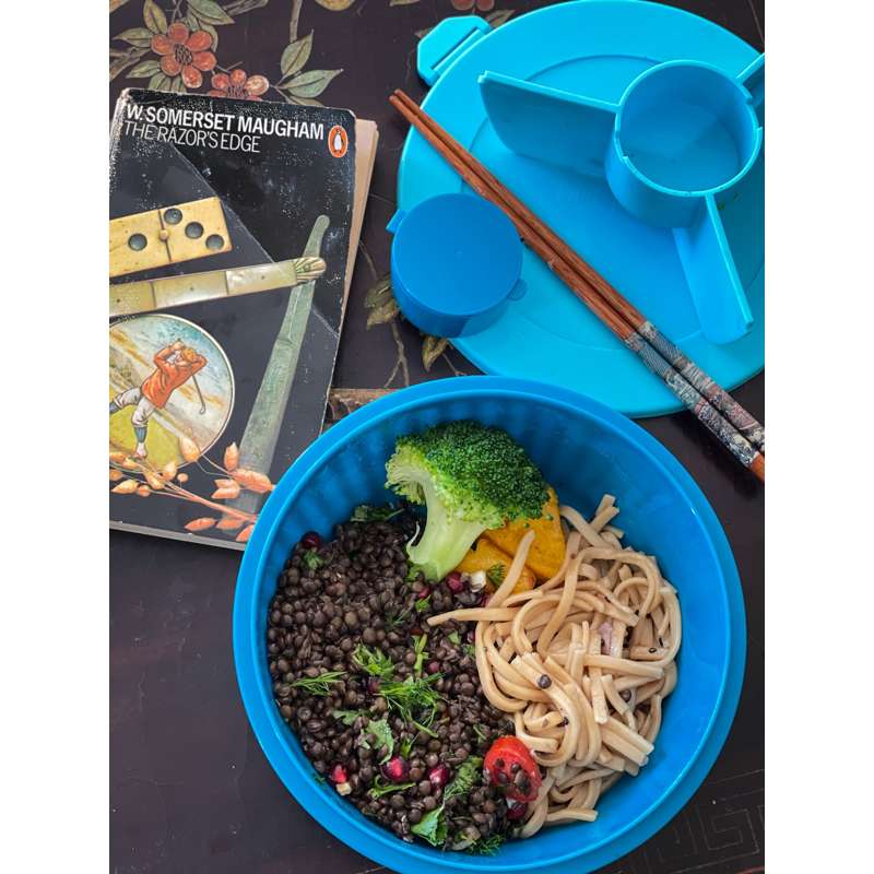 Brug den enten som en almindelig madkasse med adskilte rum - eller til at blande en lækker Poke Bowl.
